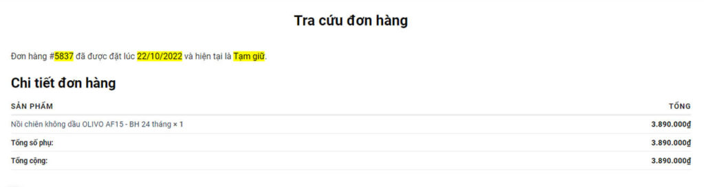 Quý khách Copy mã đơn hàng trong Email vào mục tra cứu đơn hàng và nhấn THEO DÕI. Sau đó Quý khách sẽ biết được tình trạng hàng hóa đã được tiếp nhận và xử lý chưa.