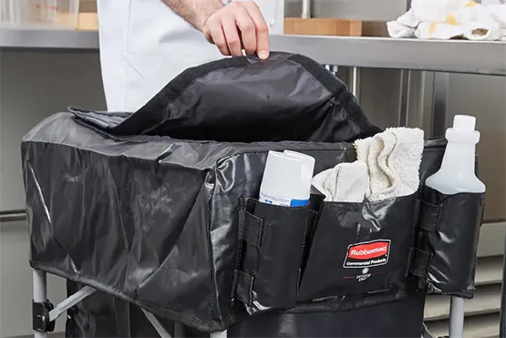 Nắp đậy dùng cho xe Rubbermaid X Cart (nhiều kích thước) – loại phụ kiện xe đẩy giặt là giúp che chắn đồ đạc bên trong xe làm vệ sinh trong quá trình làm việc. Có thiết kế thông minh và làm từ chất liệu cao cấp, nắp đậy của Rubbermaid mang đến sự chuyên nghiệp cho trong việc giữ hình ảnh thẩm mỹ của xe đẩy phục vụ tại không gian làm việc.