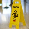 – Thông báo cảnh báo “Cẩn thận sàn ướt” được in bằng tiếng Anh