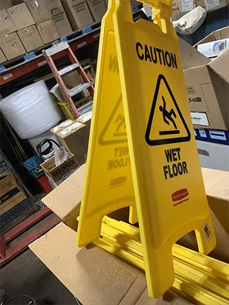 Biển báo “Cảnh báo sàn ướt” của Rubbermaid Commercial là biển báo nhẹ, giúp truyền đạt thông tin an toàn hiệu quả. Đây là biển báo sàn chất lượng cao, hai mặt, in thông điệp cảnh báo “Cảnh báo sàn ướt” bằng tiếng Anh. Biển báo có thể gập lại để cất giữ và vận chuyển thuận tiện trên xe đẩy vệ sinh hoặc xe đẩy vành, đồng thời sử dụng màu sắc và đồ họa tuân thủ tiêu chuẩn ANSI/OSHA.
