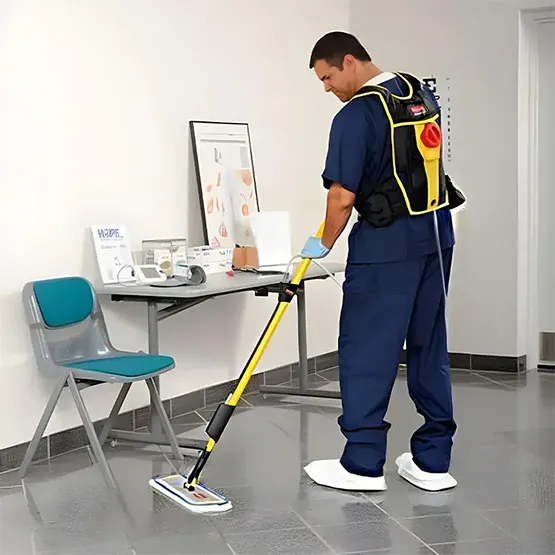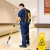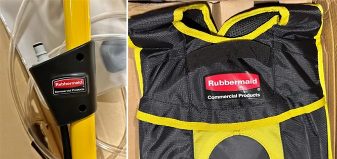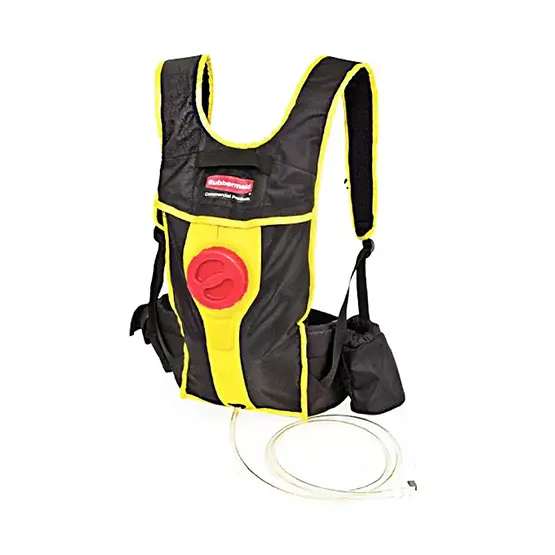 Bộ cây lau sàn bóng Rubbermaid FGQ97900YL00 – tích hợp balo chứa dung dịch và hệ thống ống nối trực tiếp đến tay cầm. Không cần trang bị thêm các dụng cụ vệ sinh như xô hóa chất, xe vắt nước