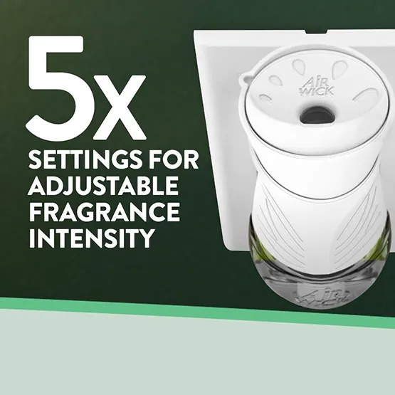 Bộ tinh dầu cắm điện Air wick 19ml. Hàng chính hãng, xuất xứ Hungary (EU). 5 Chế độ khếch tán. Hương thơm kéo dài đến 120 ngày. Sử dụng cho phòng 30 – 35m2