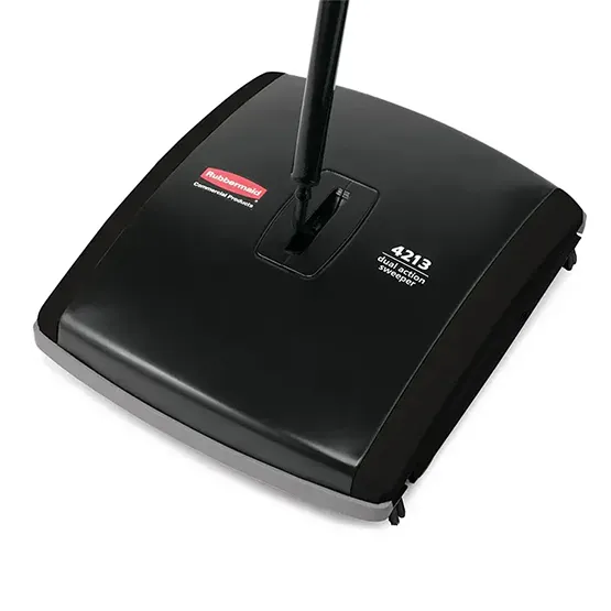 + Cây quét bụi sàn thảm Rubbermaid, 1 rulo cước mỏng cho phép tiếp cận dễ dàng các khu vực dưới đồ nội thất và góc hẹp.