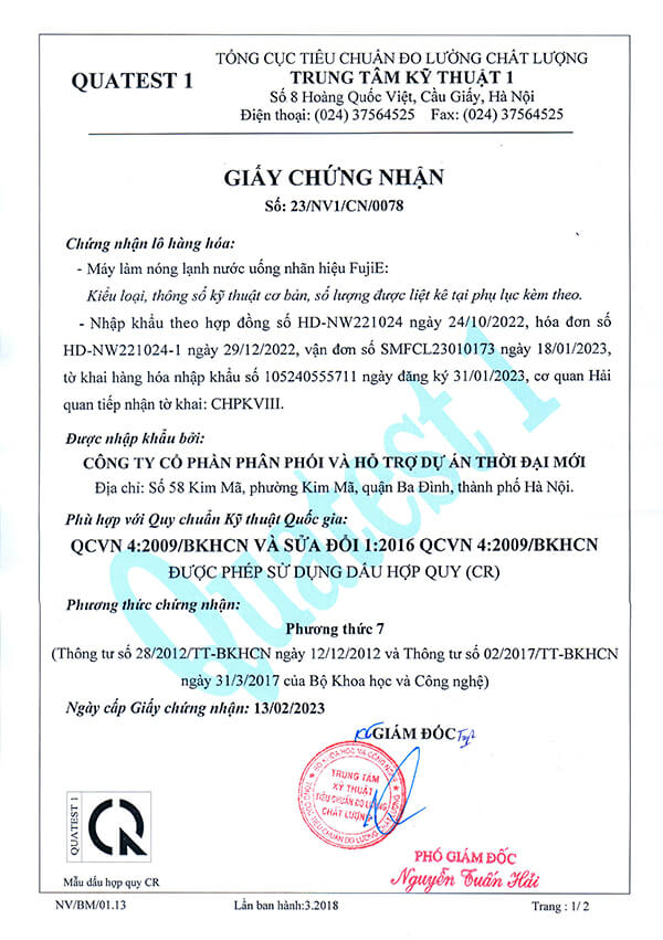 Chứng nhận đạt Quy chuẩn về kỹ thuật quốc giá về an toàn đối với thiệt bị điện và điện tử