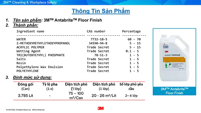 | Tên SP | Hóa chất phủ bóng sàn chống tĩnh điện 3M™ Anta Brite Floor |