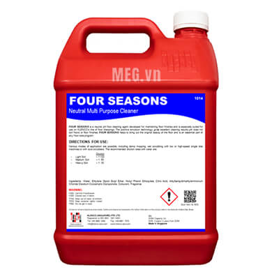 FOUR SEASONS là chất tẩy rửa sàn có độ pH trung tính được phát triển để duy trì lớp hoàn thiện của sàn và đặc biệt phù hợp để sử dụng trên dòng sản phẩm đánh bóng sàn của KLENCO. Công nghệ nhũ tương tích cực mang lại kết quả làm sạch tuyệt vời nhưng không làm mờ sàn hoặc lớp hoàn thiện sàn. FOUR SEASONS giúp mang lại vẻ đẹp ban đầu của sàn nhà và là một phần thiết yếu của bất kỳ chương trình chăm sóc sàn nhà nào.