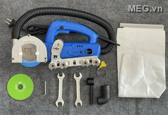 Máy sử dụng lưỡi cắt kim cương hoặc hợp kim chuyên dùng để cắt ron, đường kính phổ biến 100 – 125mm. Người dùng có thể điều chỉnh độ sâu cắt từ 5mm đến 30mm, phù hợp với mọi loại ron từ mỏng đến dày, trên cả sàn và tường gạch.