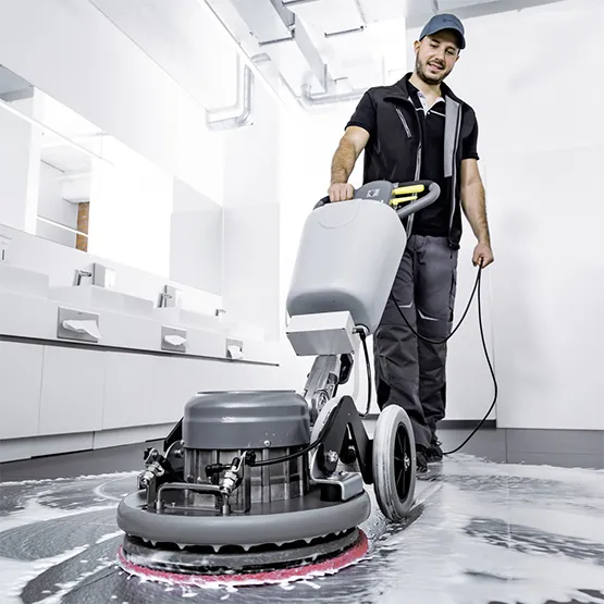 Karcher BDS 43/ Orbital C Spray có thể kết hợp với các loại phụ kiện bao gồm bàn chải mềm, bàn chải cứng, pad chà sàn,… để vệ sinh hiệu quả cho mọi chất liệu mặt sàn khác nhau như gỗ, đá, bê tông, sàn trải thảm,… Nhờ đó, thiết bị dễ dàng đánh bay mọi vết bẩn cứng đầu trên nền nhà trong thời gian ngắn, giúp các doanh nghiệp tiết kiệm tối đa chi phí thuê nhân công vệ sinh.