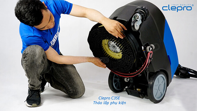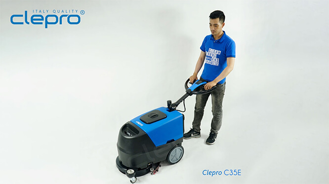 Máy chà sàn liên hợp Clepro C35E. Dùng điện 220V/50Hz. Chà khoẻ, giá rẻ – Tiết kiệm điện, nước với công nghệ Italia tiêu chuẩn. BH 18 tháng
