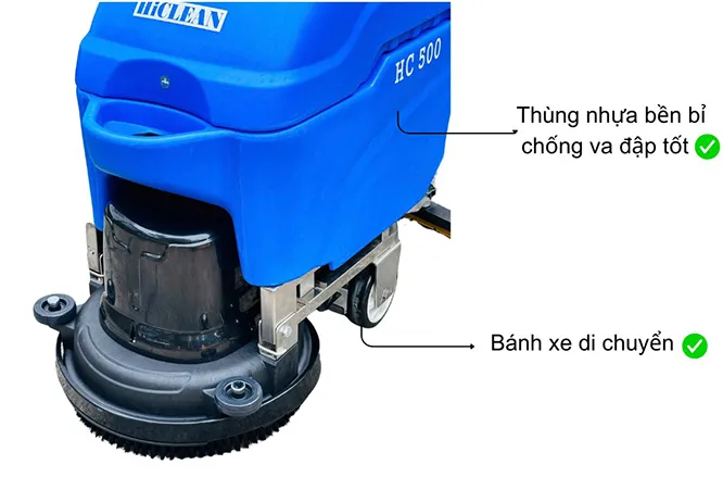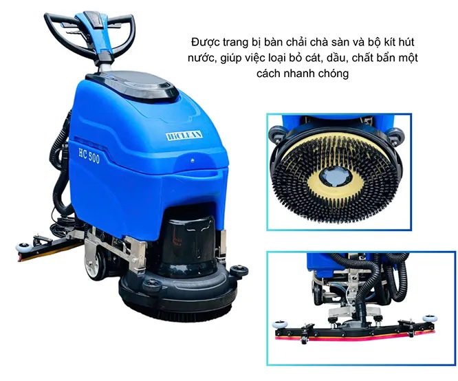 Máy chà sàn liên hợp HiClean HC 500 (Màu xanh). Sử dụng điện 220V, Công suất chà: 1100W, Công suất hút: 1000W. Hiệu suất làm việc 1820m2/giờ. Bảo hành 18 tháng