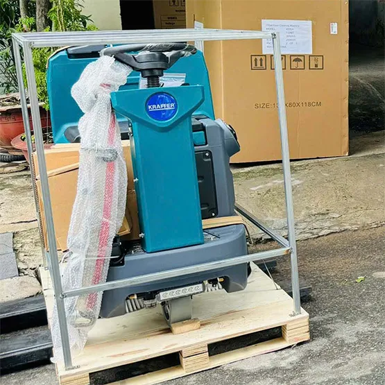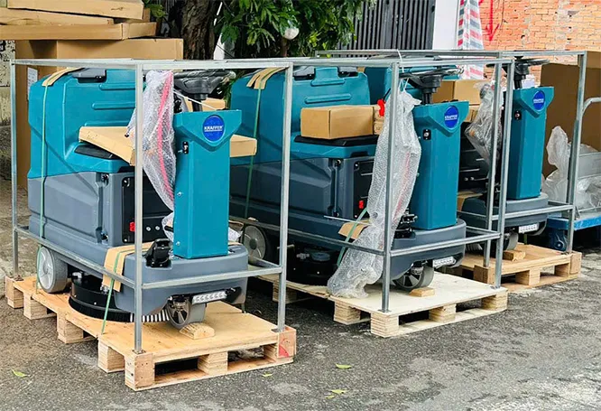 Máy chà sàn ngồi lái KRAFFER KF80A. Nguồn điện áp  (Ắc quy:  2 x 12V/120Ah). Hiệu suất làm sạch: 4000 m²/h; thời gian làm việc liên tục từ 3.5 – 4h. Hàng chính hãng, BH 18 tháng