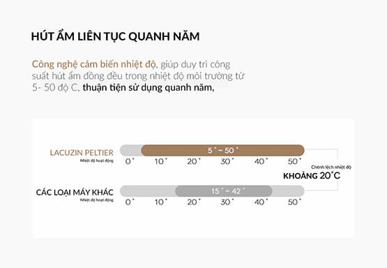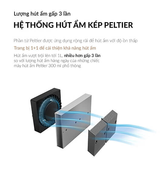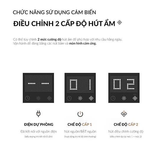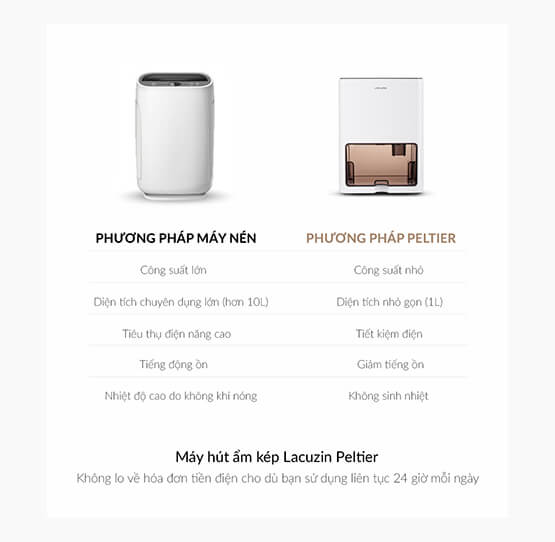 – Công suất hoạt động 60W, lượng hút ẩm gấp 3 lần, tiết kiệm điện năng và không sinh nhiệt đảm bảo an toàn