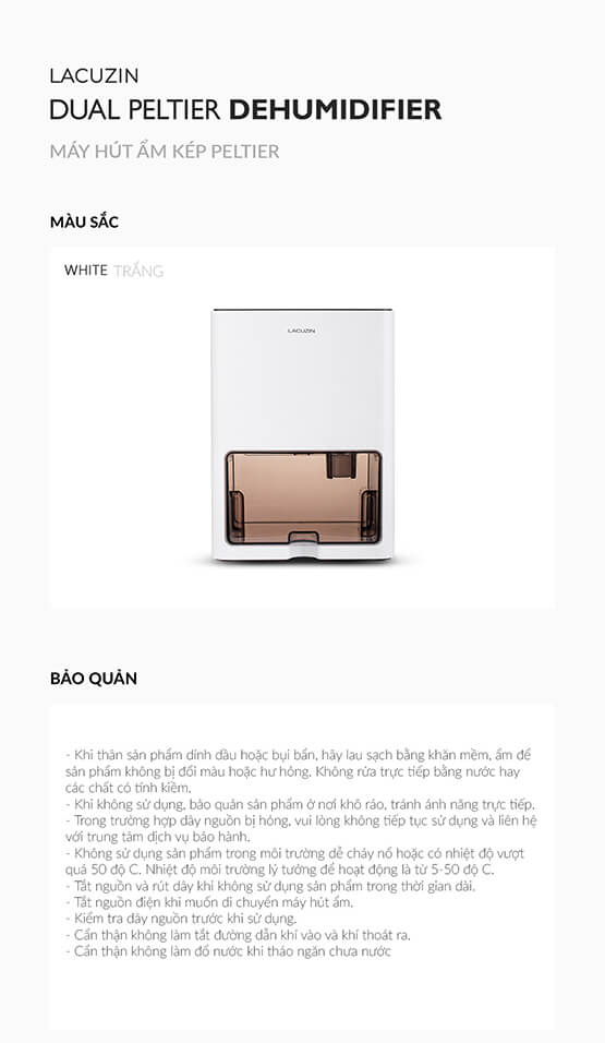 Máy hút ẩm kép Lacuzin LCZ100WT – Dual Peltier Dehumidifier