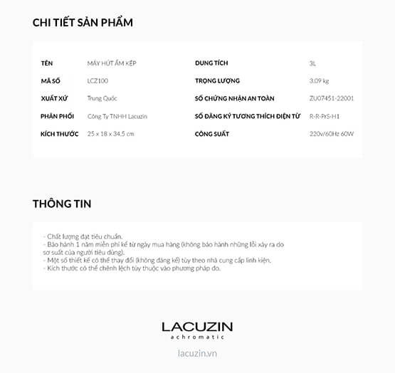 | Thương hiệu | Lacuzin – Hàn Quốc |