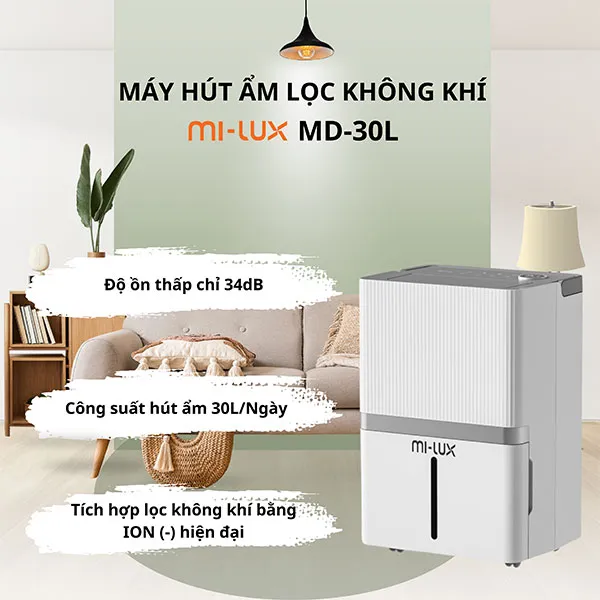 Máy hút ẩm & lọc không khí Mi-lux MD-35 (35 lít/ngày)