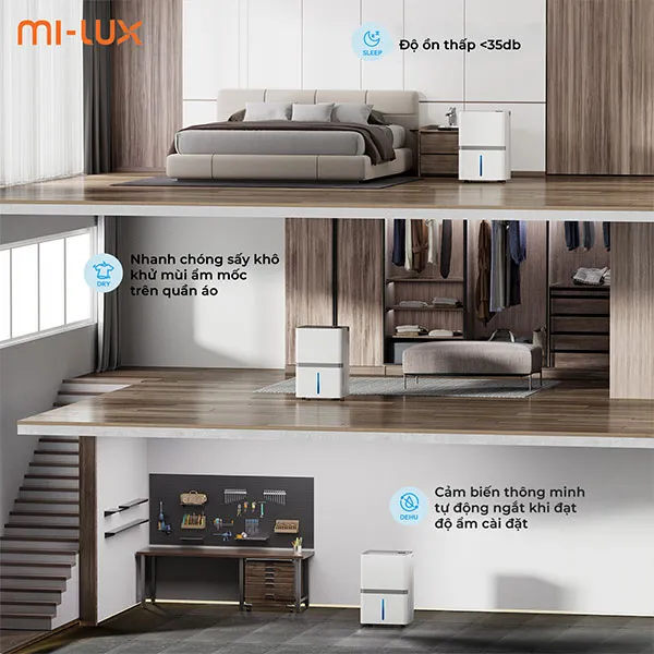 | Tên Sản phẩm | Máy hút ẩm & lọc không khí Mi-lux MD-35 |