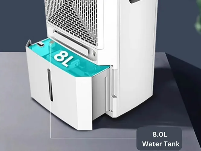 Bình chứa nước ngưng của máy hút ẩm Steiger STG-855DW có dung tích đến 8 lít, có thể sử dụng trong nhiều ngày tùy theo mức độ sử dụng máy cũng như độ ẩm trong phòng. Dung tích bình chứa lớn giúp bạn tiết kiệm thời gian và công sức vì không cần phải đổ nước thường xuyên.