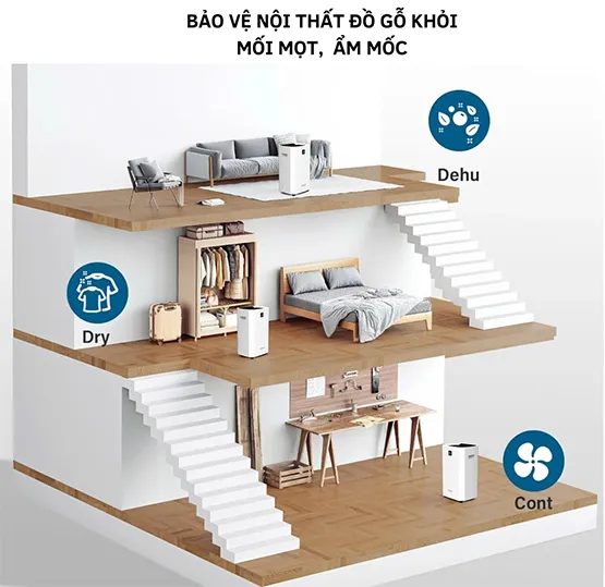3 chế độ hút ẩm, 2 tốc độ quạt tùy chỉnh theo nhu cầu