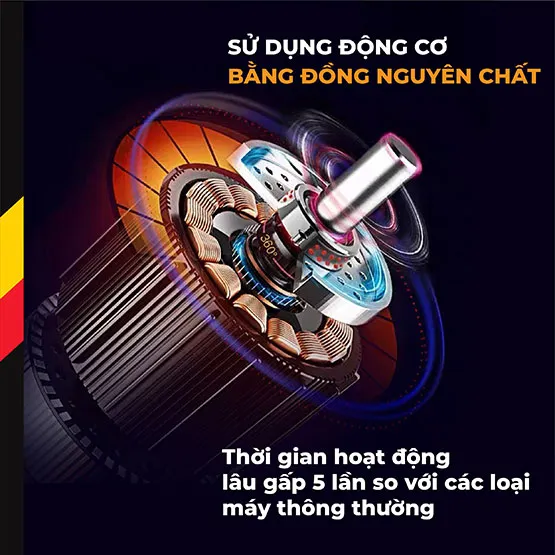 Với động cơ được làm bằng đồng nguyên chất, máy hút bụi Kalpen có tuổi thọ hoạt động gấp 5 lần so với các loại máy hút bụi thông thường khác trên thị trường.