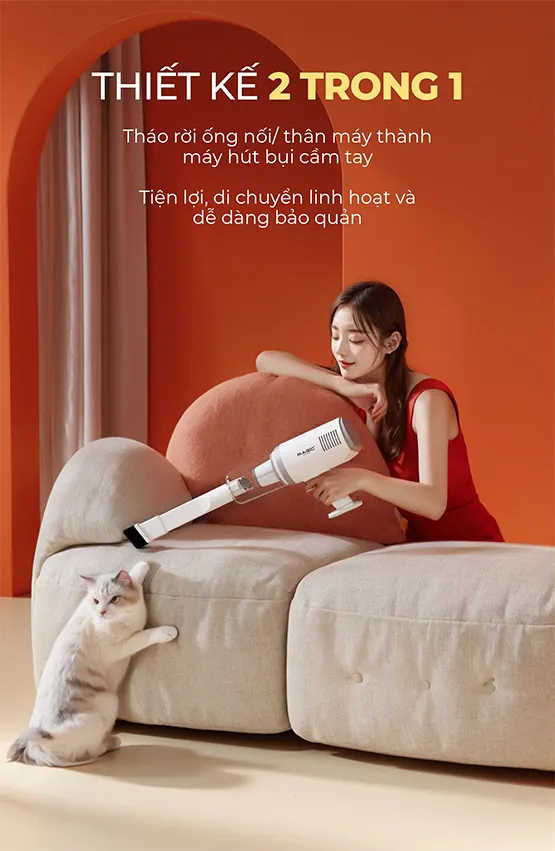 Máy hút bụi Magic A-061 với thiết kế 2 trong 1 cho phép bạn dễ dàng tháo rời ống nối/thân máy để biến máy thành máy hút bụi cầm tay. Điều này mang lại sự tiện lợi, linh hoạt trong di chuyển và bảo quản đơn giản, tạo nên trải nghiệm sử dụng thuận lợi và hiệu quả cho người dùng.