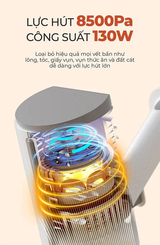LỰC HÚT 8500Pa, CÔNG SUẤT 130W