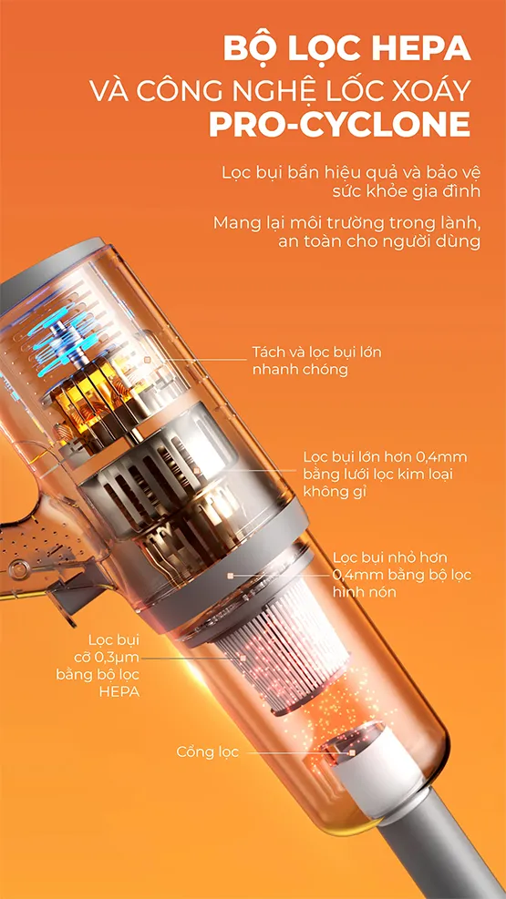 BỘ LỌC HEPA VÀ CÔNG NGHỆ LỐC XOÁY PRO-CYCLONE