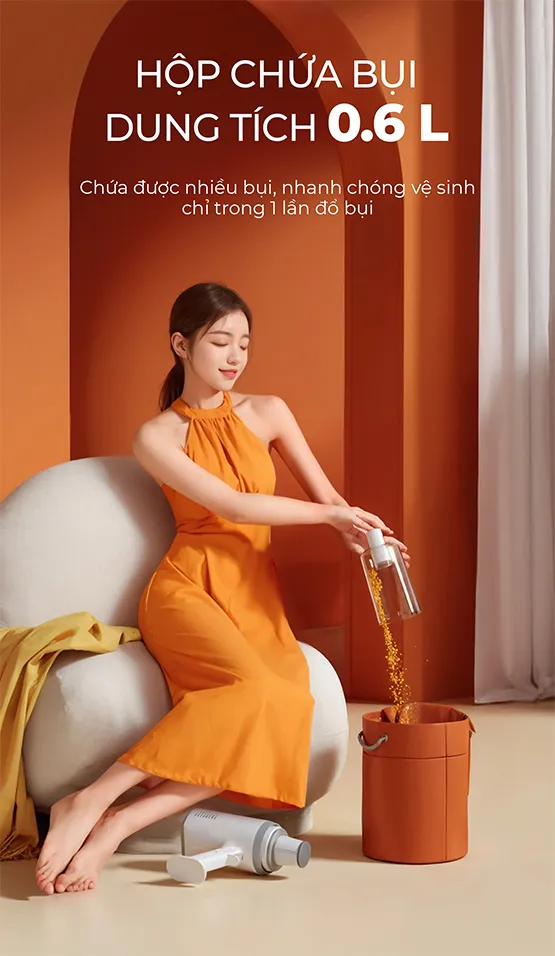 – Hộp chứa bụi dung tích 0.6 lít, có khả năng chứa nhiều bụi, giúp bạn vệ sinh nhanh chóng chỉ trong một lần đổ bụi.