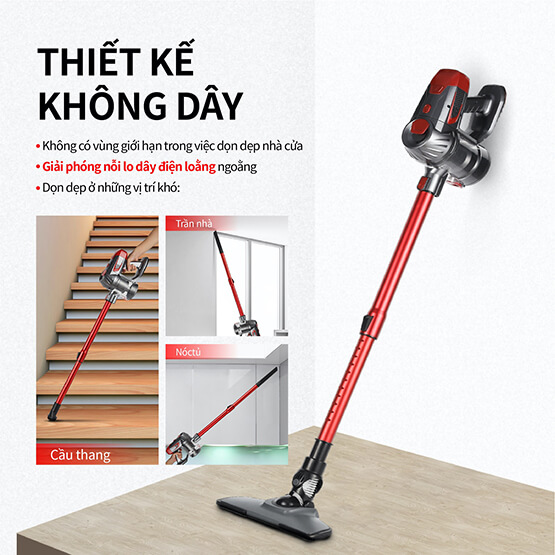 – Vệ sinh mọi vị trí trong nhà, xe hơi, giường đệm nệm… nhờ thiết kế không dây tiện lợi
