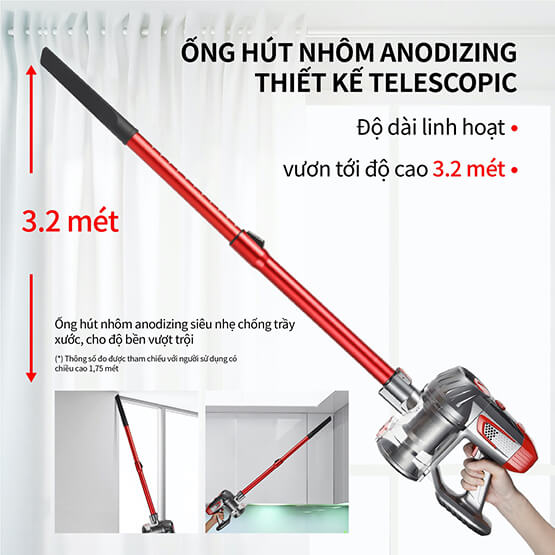 ỐNG HÚT THÔNG MINH ĐẶC BIỆT: Thiết kế Telescopic có thể kéo dài và thu ngắn cực kỳ tiện dụng so với các dòng máy hút bụi cũ.