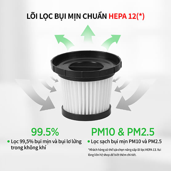 – Bộ lọc HEPA 12/13 lọc 99,5% vi khuẩn và bụi mịn.