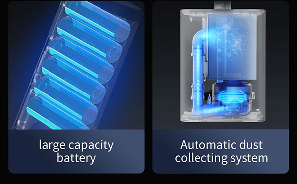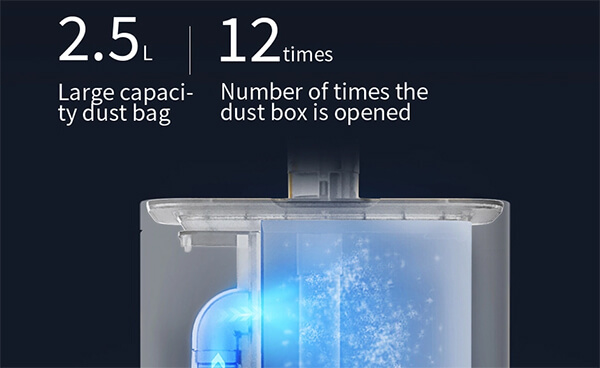 Hộp bụi của máy có dung tích 400ml và túi chứa bụi có dung tích lên tới 3,5 lít. Với dung tích lớn và khả năng tự hút rác của máy, bạn sẽ không cần phải vệ sinh hộp bụi mỗi ngày mà thay vào đó chỉ cần 1 tháng 1 lần đi vứt túi rác mà thôi.