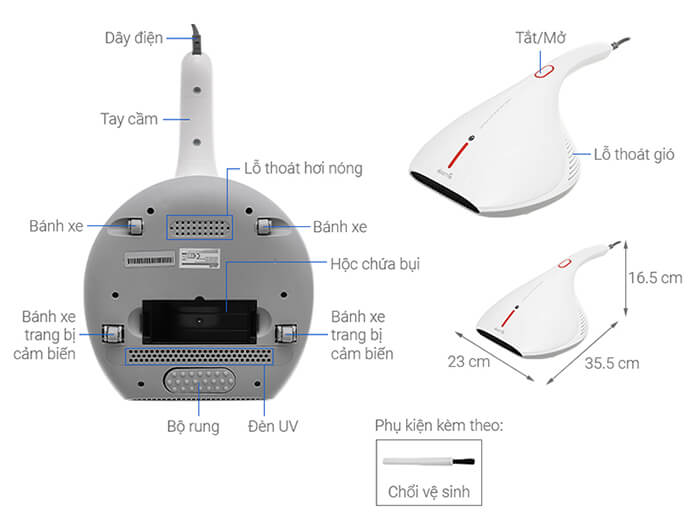 | Loại máy | Máy hút bụi cầm tay, Máy hút bụi đệm giường |