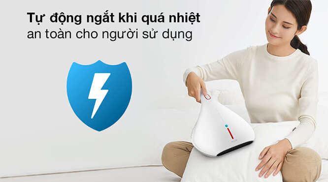 Máy hút bụi đệm giường khi hút liên tục khoảng 4 – 5 phút máy bị nóng quá thì sẽ tự động tắt để đảm bảo an toàn cho động cơ.