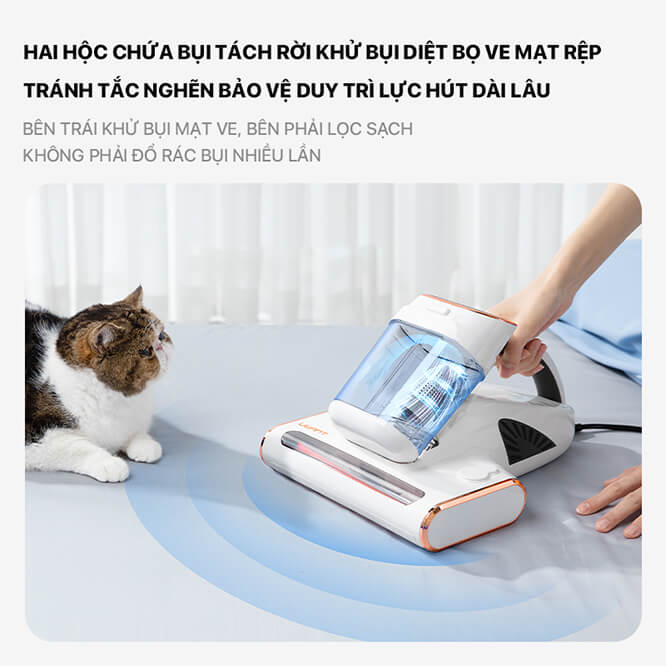 Máy hút bụi giường nệm UWANT M300 nhỏ gọn, di chuyển dễ dàng. Lực hút mạnh mẽ, loại bỏ bụi bẩn và diệt khuẩn, trên giường nệm, chăn gối hiệu quả.