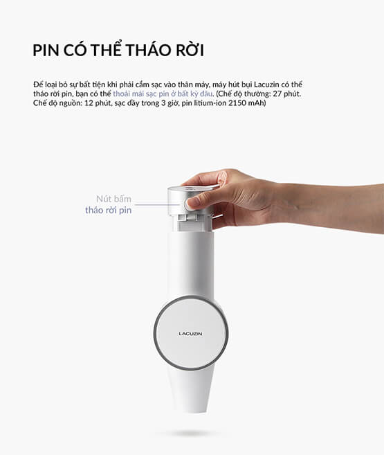Máy hút bụi kép không dây Lacuzin LCZ2116