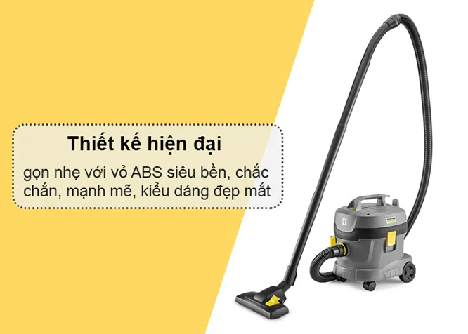 Máy hút bụi công nghiệp Karcher T 11/1 Classic có thiết kế gọn nhẹ, đường nét tinh tế, màu sắc trang nhã, hiện đại phù hợp với mọi không gian. Với lớp vỏ ABS cao cấp giúp máy chống được va đập trong quá trình sử dụng
