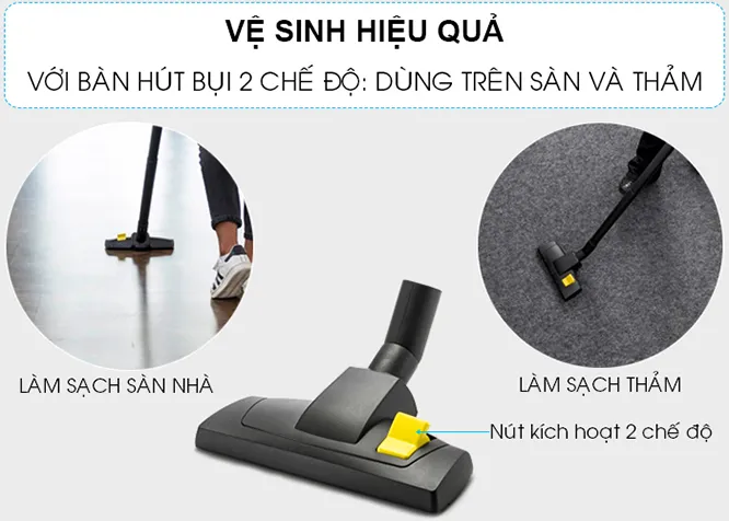 Vệ sinh hiệu quả với bàn hút bụi 2 chế độ vệ sinh sàn và thảm