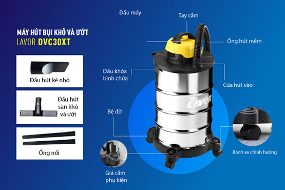 – Lavor DVC30XT – Hút bụi khô, hút nước trên mặt sàn, hút bụi bẩn công nghiệp.