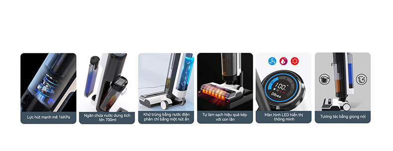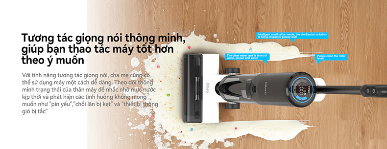 – Chế độ khử trùng nước thông minh, nước khử trùng diệt các vi khuẩn gây mùi khó chịu trên sàn, thảm
