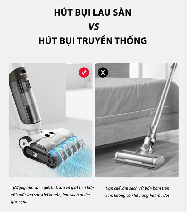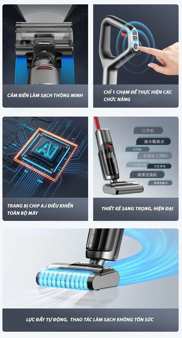 – Làm sạch chỉ 1 lần làm việc, vừa hút bụi, vừa lau sàn, 2IN1 siêu tiện lợi