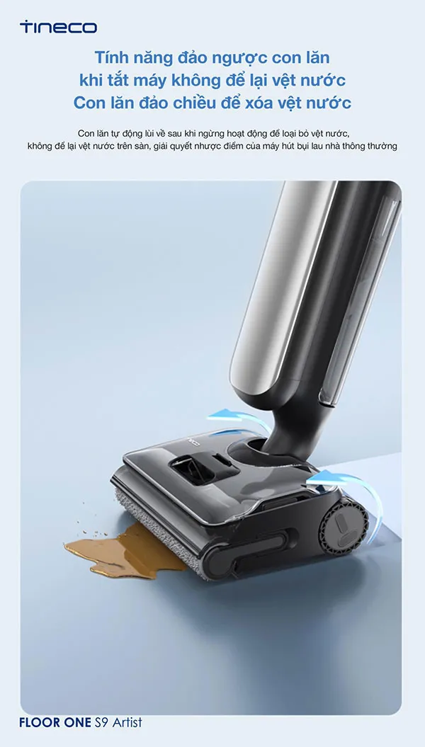 – Tính năng tự động đảo con lăn xóa vệt nước, giúp sàn luôn khô ráo.