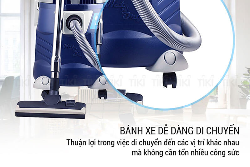 – Thân máy hút bụi được làm bằng nhựa cho độ bền cao, phía dưới có thiết kế bánh xe chắc chắn, dễ dàng di chuyển khi sử dụng.