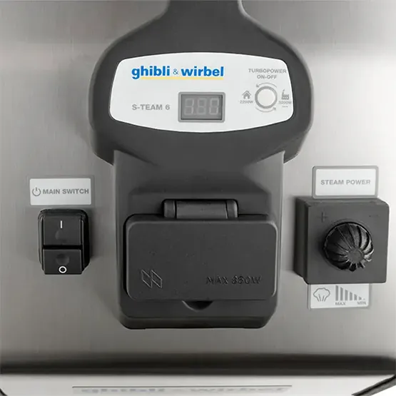 Máy làm sạch hơi nước Ghibli S-team 6. Giải pháp làm sạch hiện đại, kết hợp công nghệ hơi nước khô ở nhiệt độ cao (165°C) và áp suất 6 bar, mang lại hiệu quả vượt trội mà không cần sử dụng hóa chất