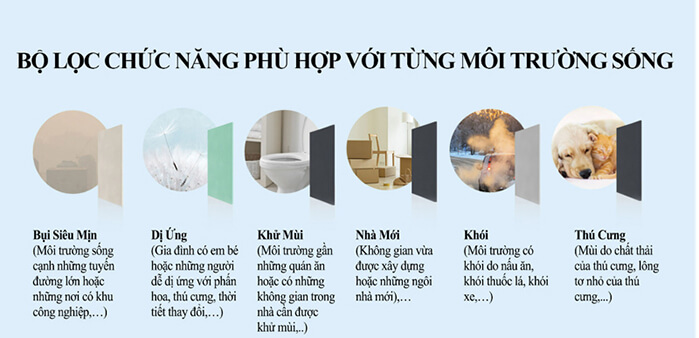 – Có thể lọc bụi mịn với kích thước 0.1um(PM1.0)