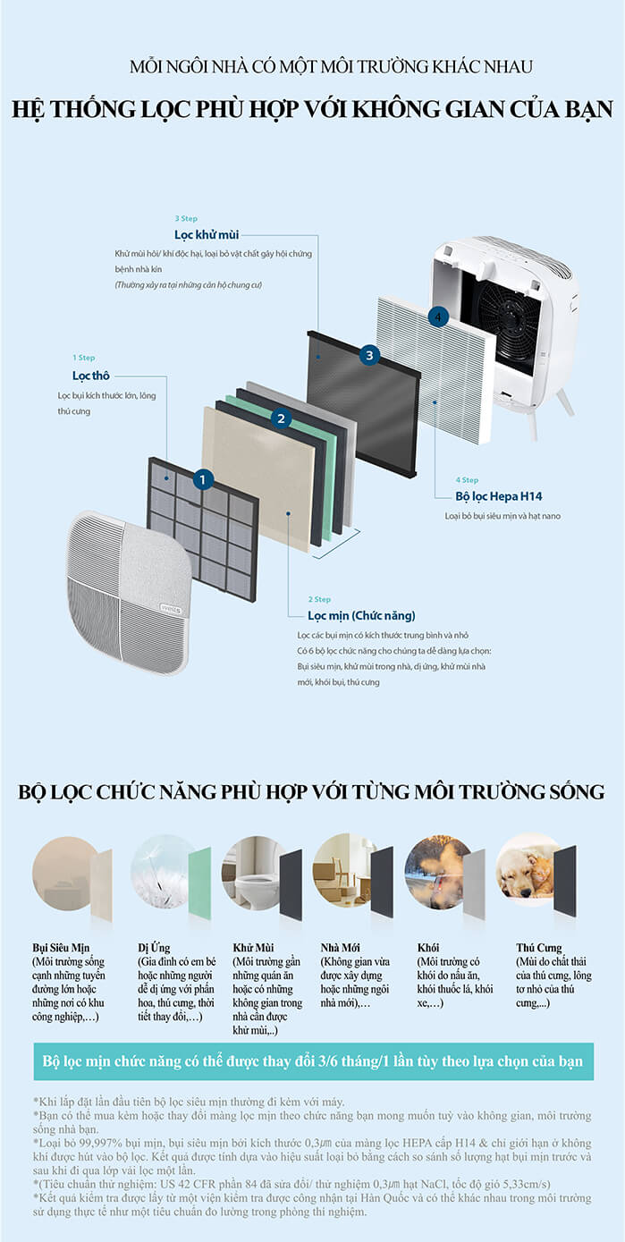 | Bộ lọc | Bộ lọc khử mùi, Bộ lọc thô, HEPA |