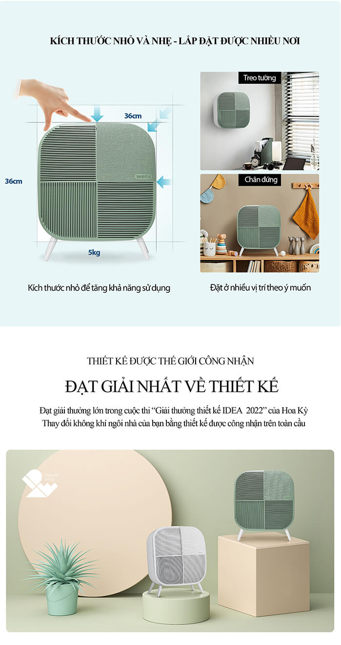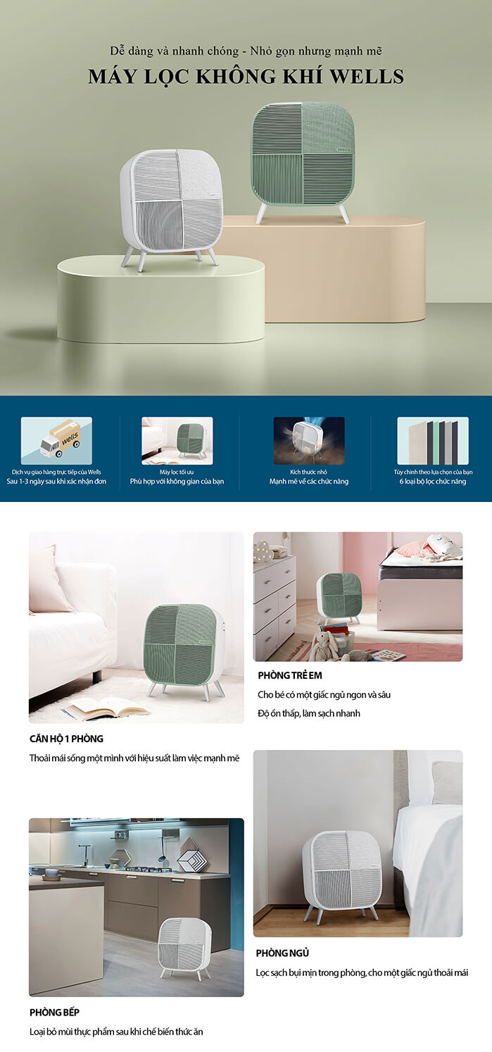 Với định hướng tất cả mọi người đều xứng đáng nhận được những thứ tốt nhất, Wells mang đến cho người dùng các sản phẩm chất lượng đi đầu, thiết kế trang nhã và đa chức năng tiện ích. Chỉnh chu trong từng chi tiết, các thiết bị gia dụng như máy lọc nước, máy lọc không khí và thiết bị làm đẹp đã nhận được nhiều giải thưởng danh giá nhất thế giới về thiết kế.