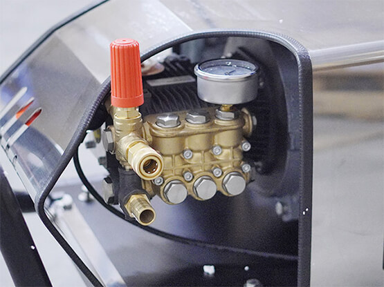 – Thiết bị sử dụng dòng điện 3 pha, 380V, cùng với công suất động cơ lên tới 7.5KW, áp lực làm việc lên đến 250 bar (3600 PSI), khả năng tạo được áp lực phun rửa lớn.