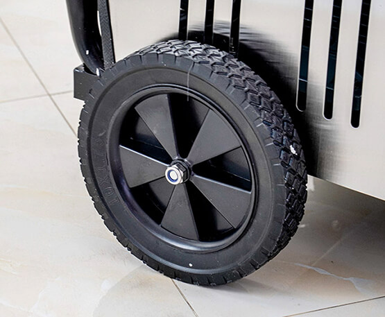 – 2 bánh xe có động, to lớn và chắc chắn ngay ở phía sau máy, cho nên việc di chuyển