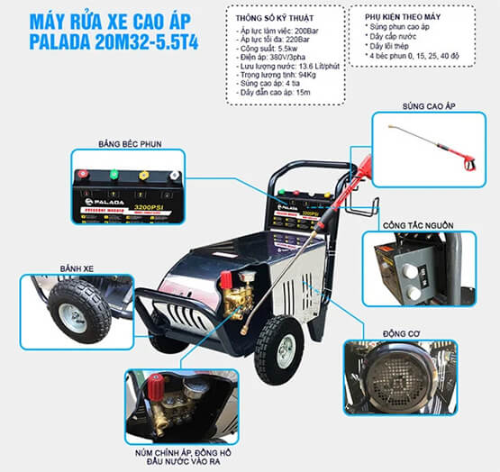 Máy phun rửa áp lực cao Palada 20M32-5.5T4