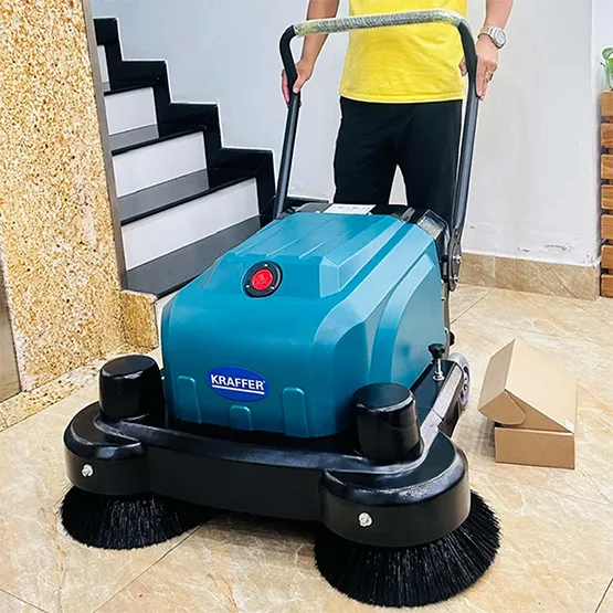 Máy quét rác đẩy tay Kraffer sử dụng bình acquy phù hợp với nhiều loại không gian và môi trường: